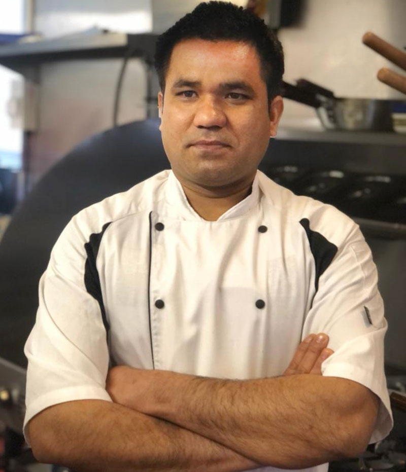 Chef Narayan Basnet — with extensive experience in luxury restaurants across Delhi and Dubai, Chef Narayan infuses his cooking with authenticity, bold flavours, and a flair for innovation.